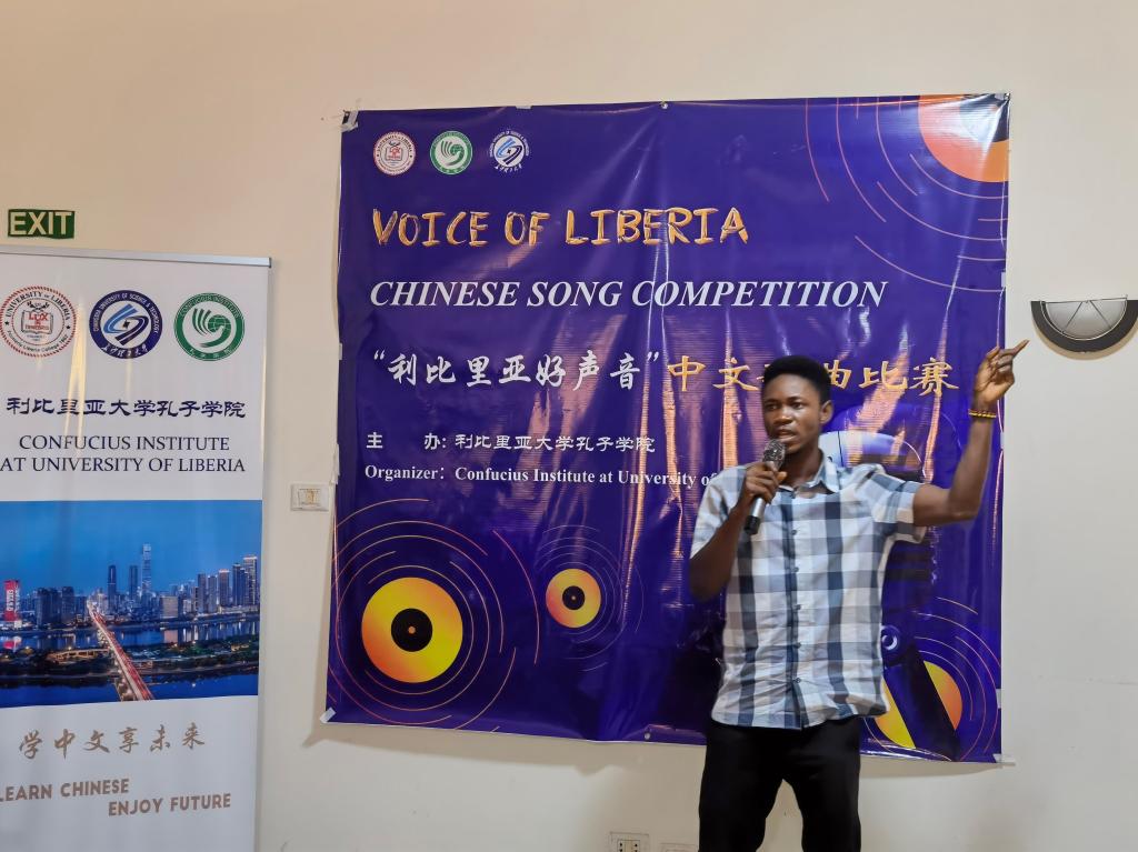 接下来,就是精彩的“利比里亚好声音”中文歌曲比赛。选手们一个个上台,演唱了自己的拿手曲目。从新民谣式的《平凡之路》到有华人的地方就有邓丽君的《我只在乎你》,从抖音火爆的《听我说谢谢你》,到热情澎湃的《我们都是追梦人》,同学们发音标准,吐词清晰,歌声动人,引起了观众们一阵又一阵的热烈掌声。