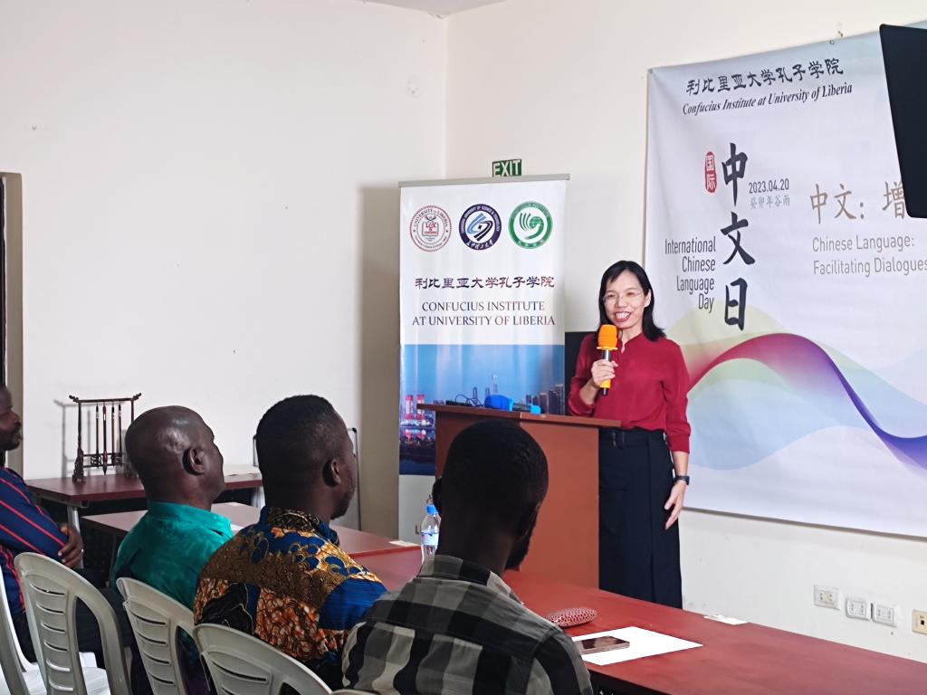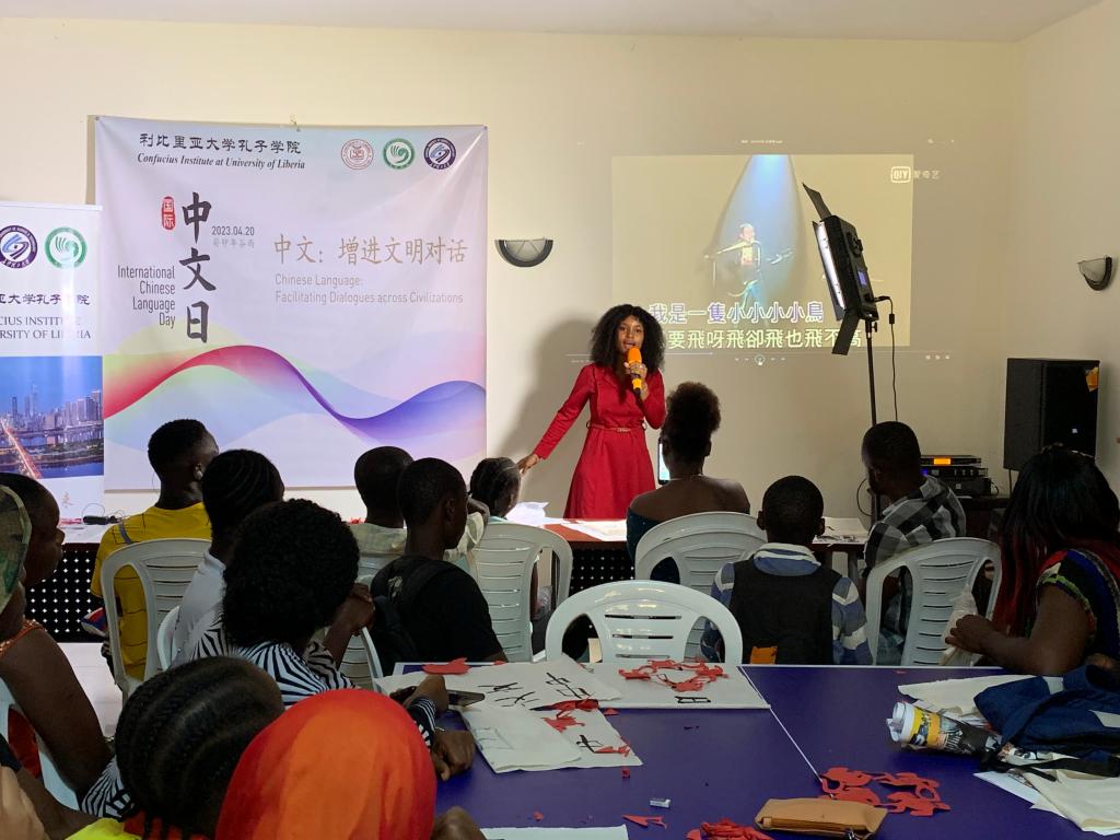 当地时间2023年4月15日,利比里亚大学孔子学院在驻地成功举办“2023国际中文日”文化活动,这是利大孔院举行的“国际中文日”系列活动之一。中资企业和机构代表、利比里亚主流媒体记者代表、利大孔院各教学点负责人、利大孔院中外方院长及师生共80余人参加了此次活动。
