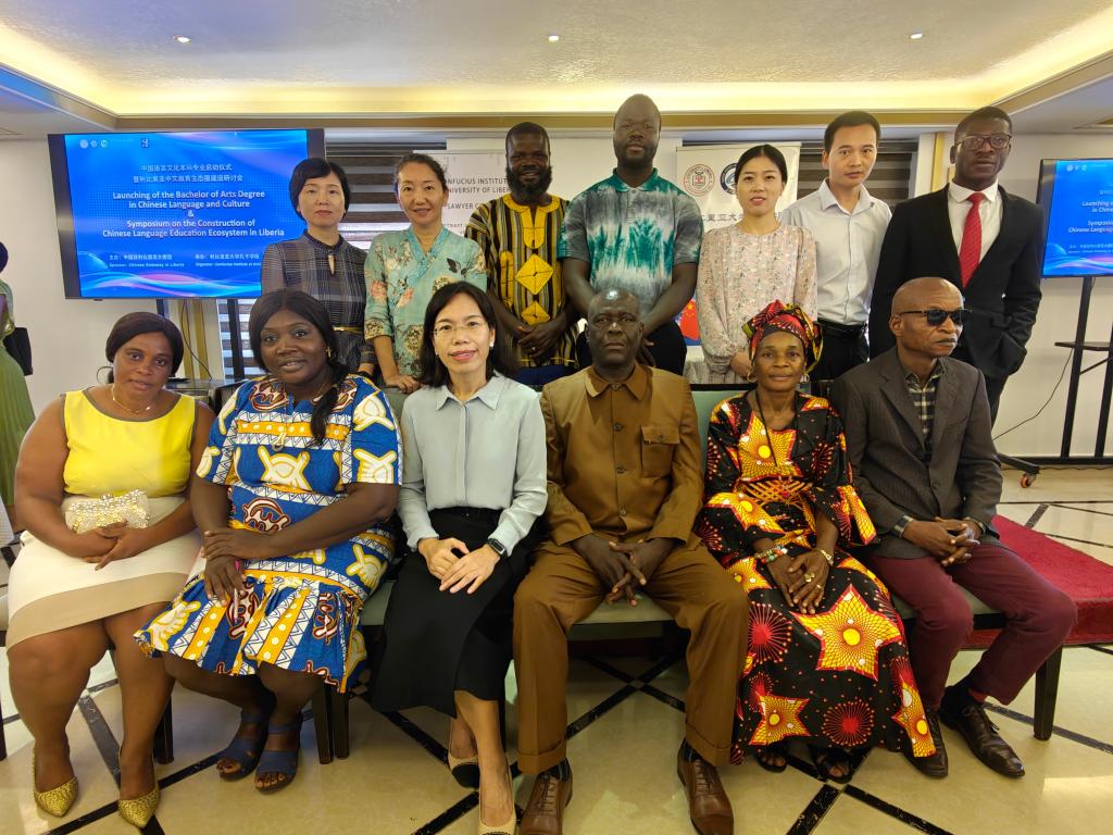 2023年9月26日,利比里亚大学孔子学院成功举办中国语言文化本科专业启动仪式暨利比里亚中文教育生态圈建设研讨会。此次盛会是利大孔院为迎接“孔子学院日”所举行的系列活动之一。中国驻利使馆临时代办范尔为、利比里亚大学校长代表行政副校长Tarr、利比里亚通讯社代社长Kahlai、利大多位副校长、多个学院院长、利大人文社科学院代院长Togar率多个系部主任、在利中资企业和援利医疗队代表、友华团体、利大孔院各教学点等负责人和代表共百余人应邀参会。利国十余家知名电视台、电台、报刊等媒体进行了现场直播和报道。