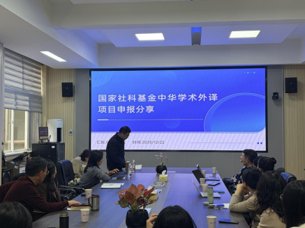 近日,国家社科基金中华学术外译项目申报工作备受学界关注。在此轮申报中,我院武俊辉教授凭借深厚的学术积淀与精准的研究方向成功获批立项,展现了学院在该领域的扎实积累。为进一步推动学院学术成果走向世界,助力更多教师把握申报契机、提升科研国际化水平,12月22日下午两点半,我院特邀中南大学单宇教授与本院武俊辉教授,于三教214会议室共同举办“中华学术外译项目申报”专题讲座。