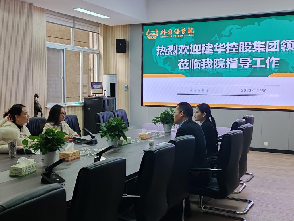 为推动产学协同创新,寻求校企合作共赢、共谋发展的良好局面,11月30日上午外国语学院于三号教学楼214会议室顺利召开建华控股集团校企合作座谈会。建华供应链集团人资负责人何孟凡和建华控股校招负责人胡嘉颖莅临我校外国语学院座谈校企合作。党委书记文丽丽、党委副书记周芳、就业专干武巧琳共同参加本次座谈会,与企业代表进行合作交谈。