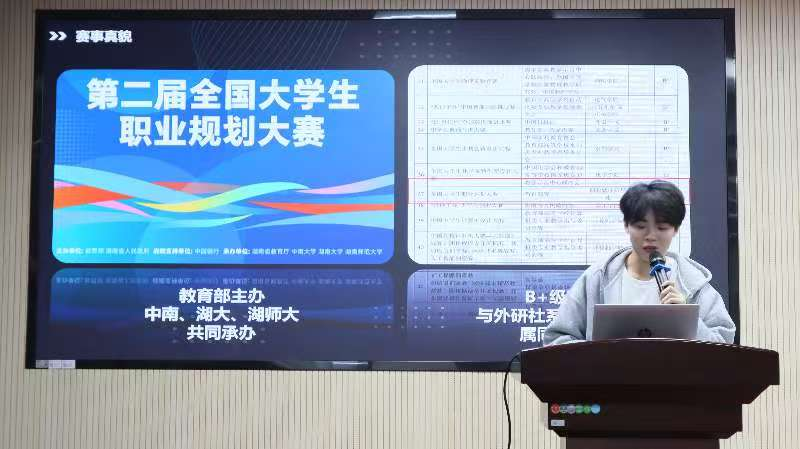 2025年11月6日15:00为帮助学子明晰职业规划方向,高效掌握竞赛备赛技巧,共探职业发展新路径外国语学院三教321会议室组织开展职业规划大赛经验分享会。此次经验分享会特邀第二届全国大学生职业规划大赛金奖获得者赖剑腾同学担任主讲,23、24级百名同学参与本次分享会