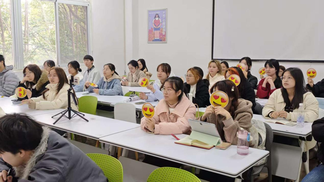 答辩现场依循“展示-互动-点评”流程有序推进。选手们结合外语特色与专业优势进行7分钟职业规划阐述,展现了口译、国际教育、“外语+”等多元职业路径。朋辈心选团为心仪选手举牌支持,现场氛围活跃。