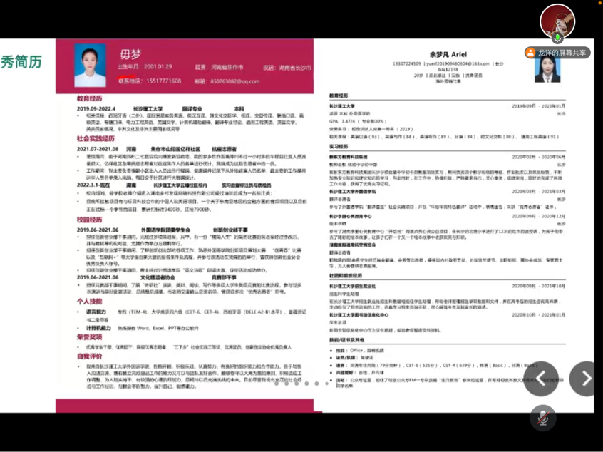 龙洋就业信息搜索与管理的方法、求职相关事项、简历制作给学生进行了分享她给学生分享了搜找就业信息的各类平台,也重点就2025年新澳门原料网站云就业平台”微信公众号的具体使用指南给学生进行了指导。她通过展示一些本年级学生的优秀简历,指导学生如何制作一份令面试官满意简历,如何捕获面试官的心。此外,她还重点分享了基层就业的形式与鼓励政策,并教授了一些面试的技巧及求职需要注意的细节