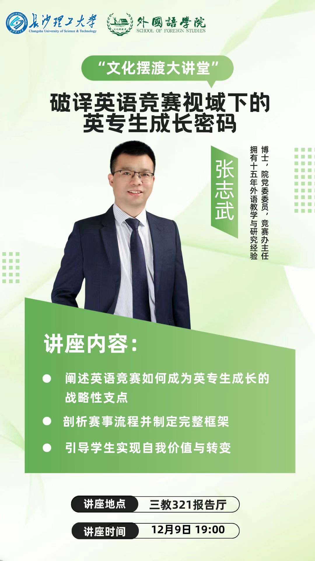 【讲座预告】文化摆渡大讲堂 :不止于赛:破解英语竞赛视域下的英专生成长密码