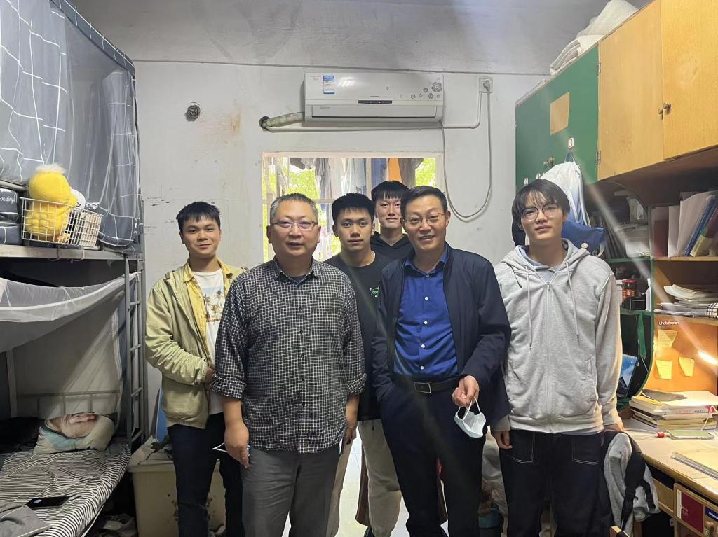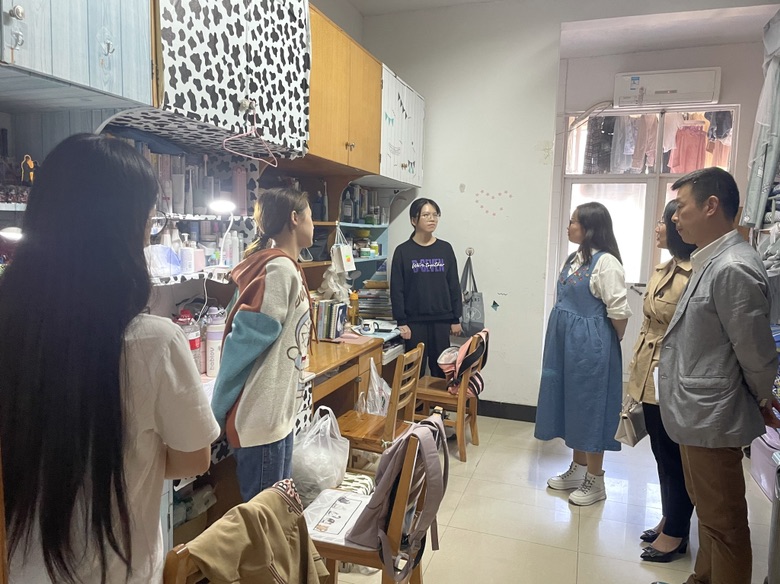 10月11日下午,外国语学院党委书记文丽丽、院长段胜峰带领全体学院党政班子成员和学工办全体辅导员深入云塘校区学生宿舍了解学生学习生活情况,并与学生们进行亲切交流。