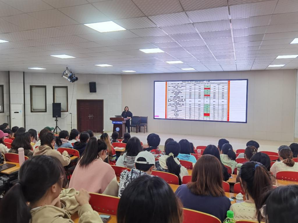 会议伊始,武巧琳老师介绍本次会议流程,并进行预热,现场气氛热烈。随后,周芳书记上台发言并指出,无论选择考研或是就业,要明确自身动机,在人生道路上的决策应当科学合理,并适合自身的发展要求。同时,希望同学们可以从会议中有所收获,也期待与学生进一步加强沟通交流。