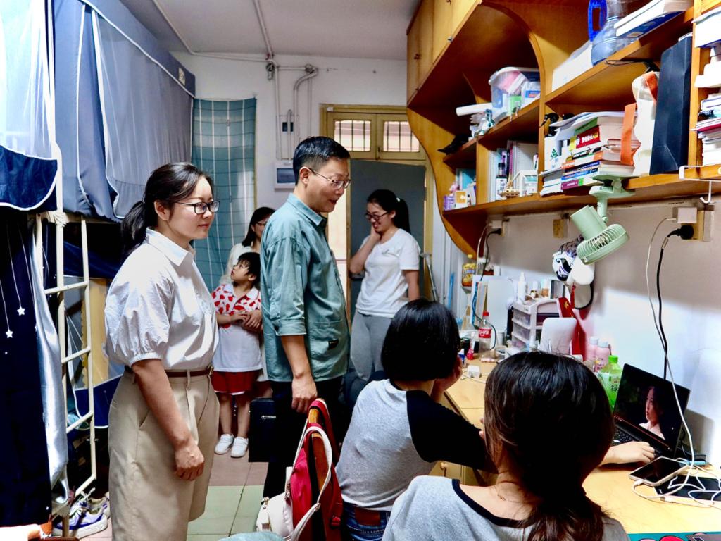 为了解广大学生新学期返校后的学习生活情况,做好学生的管理服务工作,了解外院学子的学习、生活需求,教育引导学生提高安全防范意识,9月4日至5日,外国语学院党委书记文丽丽、院长段胜峰带领全体院领导深入学生宿舍走访,与学生们亲切交流,做细、做实、做好学生思想政治教育工作。