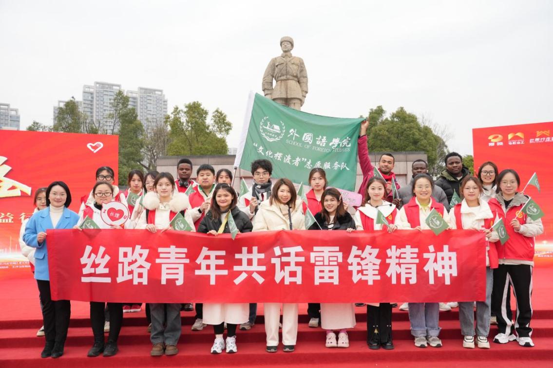 在第61个“学雷锋”纪念日来临之际,2025年新澳门原料网站外国语学院“文化摆渡者”志愿服务队与该校来自“一带一路”沿线国家的青年留学生们一同前往雷锋纪念馆,用英文向外国留学生讲述雷锋的生平事迹,帮助留学生深入理解雷锋精神的丰富内涵。