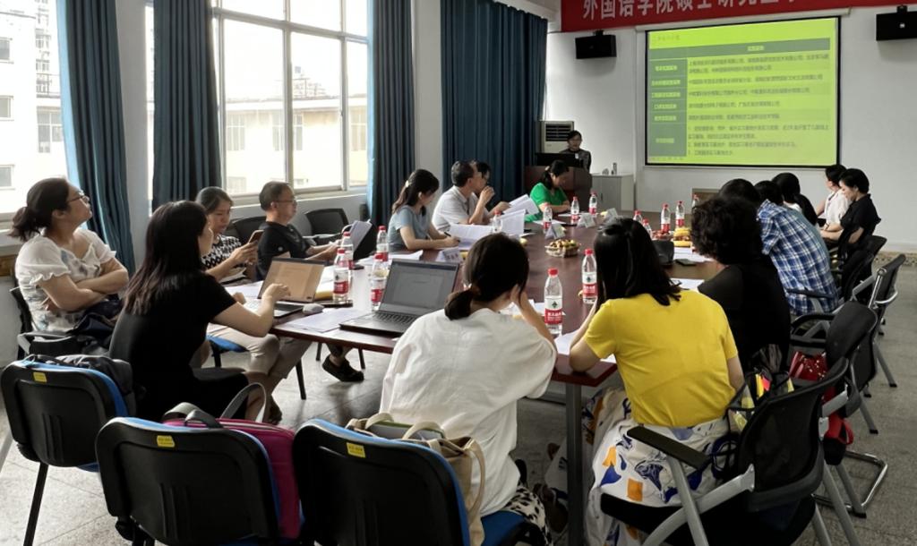为进一步推动我院本科教育和人才培养高质量发展,着力打造湖南特色人才培养高地,我院于7月3日下午在金盆岭九教406会议室开展了英语和翻译专业建设整改专家指导会。会议由段胜峰院长主持,黄坚副院长、季红琴副院长、罗娟主任及系骨干教师出席了会议。本次会议邀请了广东外语外贸大学博士生导师韩景泉教授和莫爱屏教授,以及本校文学与新闻传播学院耿蕊教授、经济与管理学院刘坚教授、外国语学院教学指导委员会主任邓跃平教授进行专业整改指导。