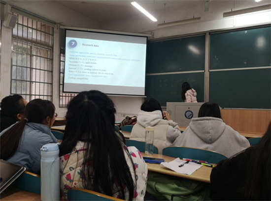 讲座中,胡珍铭老师首先对翻译研究过程做了简要介绍,帮助同学们了解何为翻译过程研究、翻译过程的路径以及翻译认知过程的发展历程等等;接着,她从翻译研究的类型、研究术语、研究方法、研究数据的处理、定量与变量分析等方面,详细介绍了翻译过程研究相关理论知识,并列举了国内外翻译过程研究的相关实例,分享了自己在实际翻译研究过程出现的情况,让同学们对翻译过程研究有了更加深刻、形象的认识。同学们在讲座过程中积极与胡珍铭老师进行互动,反响热烈。