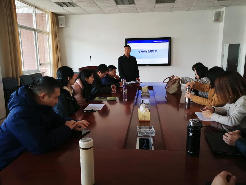 2019123日下午2点半,外国语学院在文科楼A603召开了校本特色教材建设研讨会。此次会议由副院长黄坚主持,来自外国语言文学系、公共外语基础部和提高部的编写团队成员全部参会。