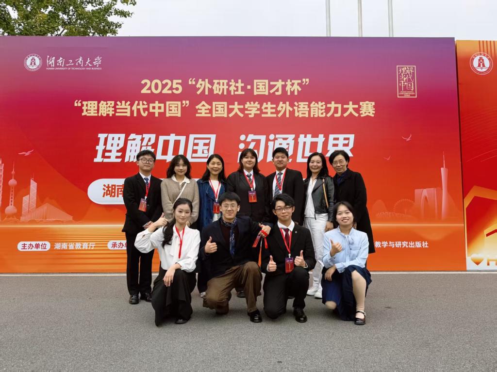 1026日,由湖南省教育厅主办的2025年“外研社·国才杯”“理解当代中国”湖南省大学生英语能力大赛中落幕。本届大赛共有来自全省42所高校的1064名选手同台竞技。外国语学院培训选手积极备赛,获得优异成绩:口译赛项获金、银、铜奖各1项,笔译赛项获2金1铜,短视频赛项获2银1铜,综合能力赛项获1金2银1铜,演讲赛项获金、银、铜奖各1项。总计有4名选手成功晋级全国总决赛,我校荣获团体金奖,创下我校参赛以来最佳战绩,充分彰显了我校英语教学的成果。