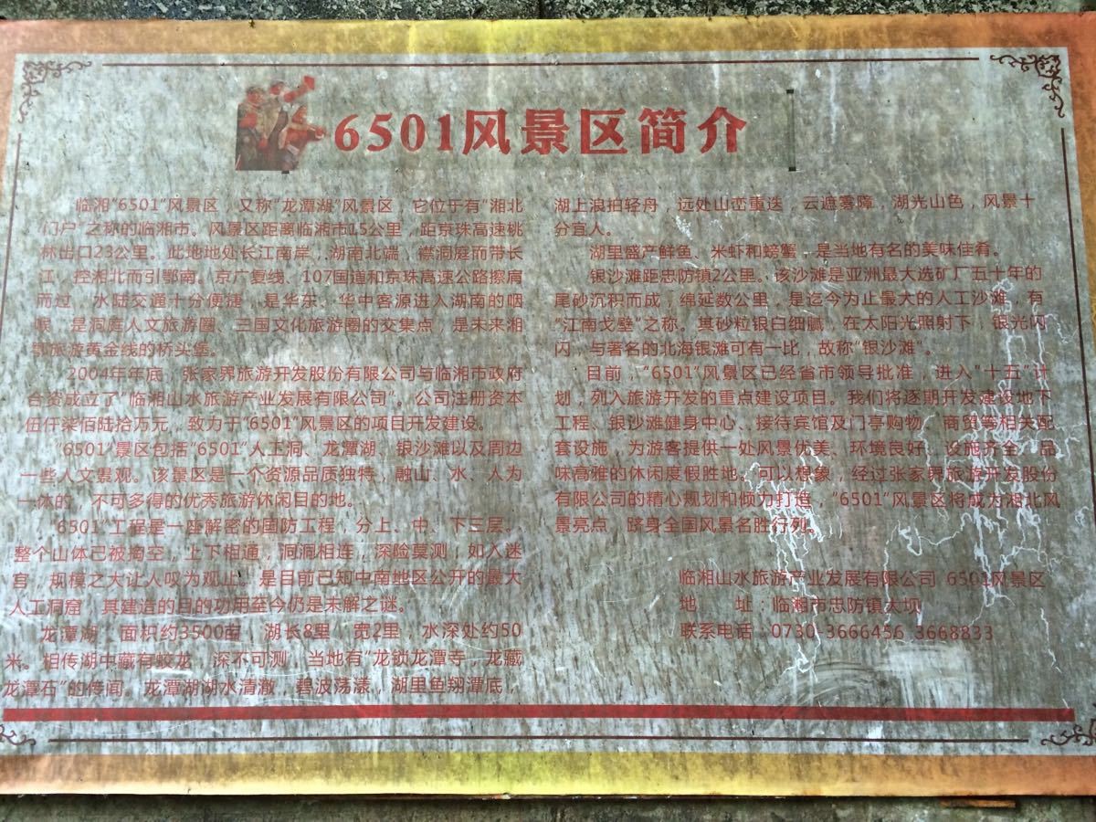 “6501”风景区,又称“龙潭湖”风景区,它位于有“湘北门户”之称的岳阳临湘市。风景区距临湘市15公里,距京珠高速桃林出口23公里。此地地处长江南岸,湖南北端,襟洞庭而带长江,控湘北而引鄂南。京广复线、107国道和京珠高速公路擦肩而过,水陆交通十分便捷,是华东、华中客源进入湖南的咽喉,是洞庭人文旅游圈、三国文化旅游圈的交集点。