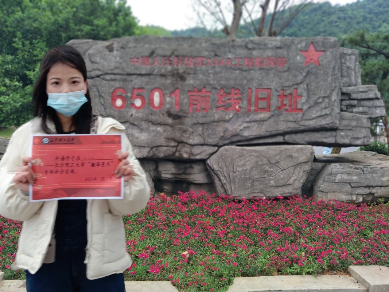2020年2月6日,为响应学院号召,提高社会实践能力,宣扬先辈优秀革命精神,传承中华优秀品格,外国语学院翻译1901班董湘参观临湘的红色景点——6501,开展“翻译医生”活动。此次活动,她参观景点、拍照搜集资料并上网搜查有关6501的历史资料,完成翻译工作。