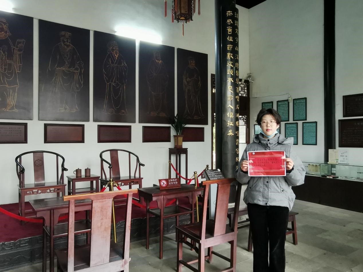 2020年1月21日,为响应学院号召,提高社会实践能力,加强对家乡特色建筑的了解与宣传,外国语学院英语1802班匡若雁来到衡阳市石鼓书院,开展“翻译医生”活动。此次活动,她参观书院、拍照搜集资料并上网搜查书院资料,完成翻译工作。
