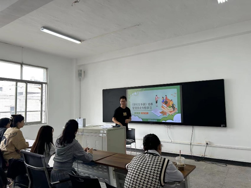 为了营造良好的学风氛围,维持良好的校园秩序,切实促进教学质量的提高,外国语学院于9月22日下午14:00组织2023级硕士研究生新生在3教622进行了《研究生手册》培养管理规定暨校纪校规专题的集中学习。