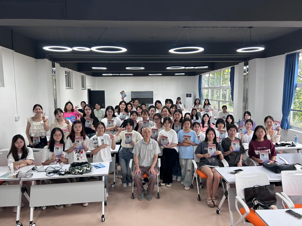 此外,郑教授还用自己的退休金从香港文思出版社为54名英语笔译专业新生购买了专著《钱钟书翻译理论与实践》,同学们万分激动地在现场排起了长龙,期待获得郑教授的亲笔签名,并与郑教授合影留念。