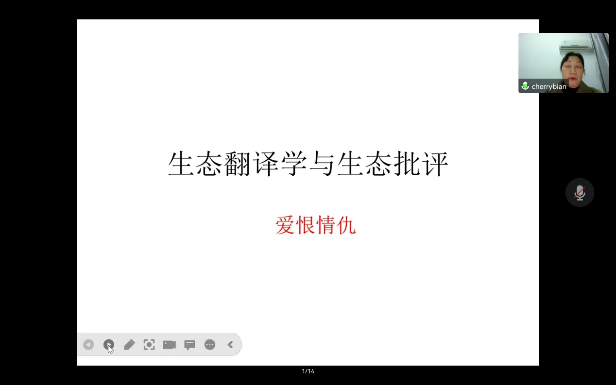 2022年12月14日晚,我院边立红副教授应邀为我校第十八届博力学术论坛“翻译生态与生态翻译”专题论坛做了题为“谈谈翻译的自然维度”的讲座。外国语学院部分导师及全体研究生参加了本次讲座。