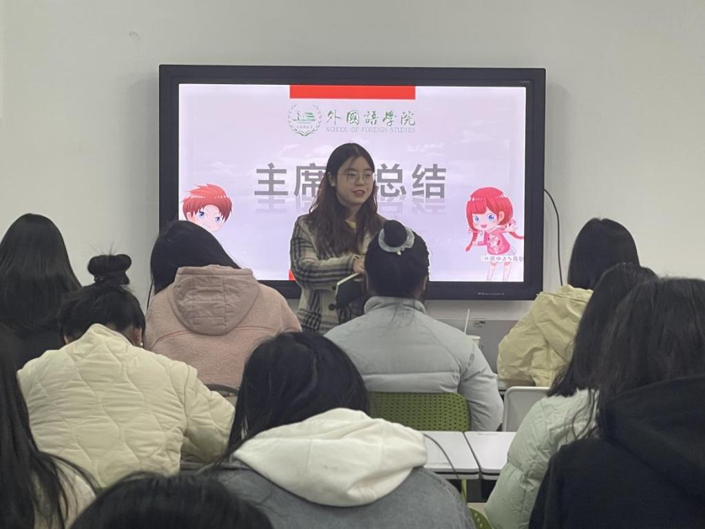 为推动外国语学院院研究生会的服务水平提质增效,1月7日下午3点半,院研会在三教220教室召开了第三次例会暨期末总结大会。本次会议由轮值主席邹嘉怡主持,研会全体干部参与。