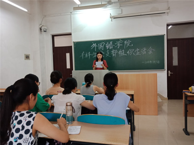2018年7月3日下午,外国语学院本科生党支部在文科楼A202开展了以“新时代,新使命,新作为”为主题的组织生活会。本次大会由支部书记陈艳霞同志主持,共有17名党员与会(正式党员6名,预备党员11名)。