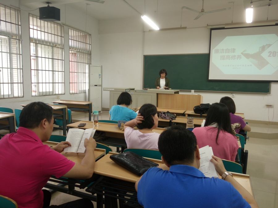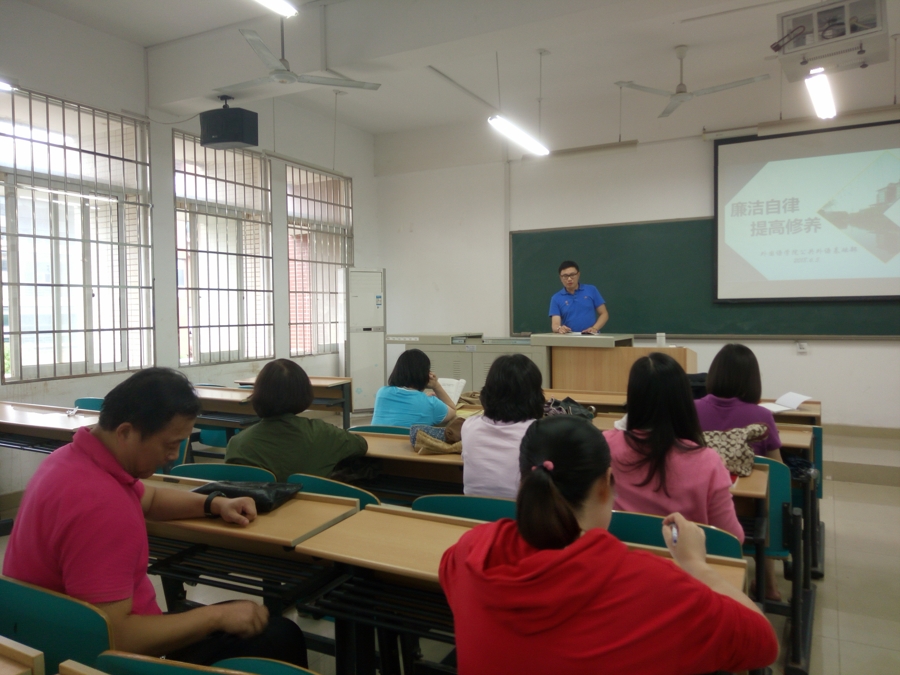 2018年6月5日下午2:30,外国语学院公共外语基础部党支部在云塘文科楼A-403召开了主题为“廉洁自律 提高修养”的党日活动。