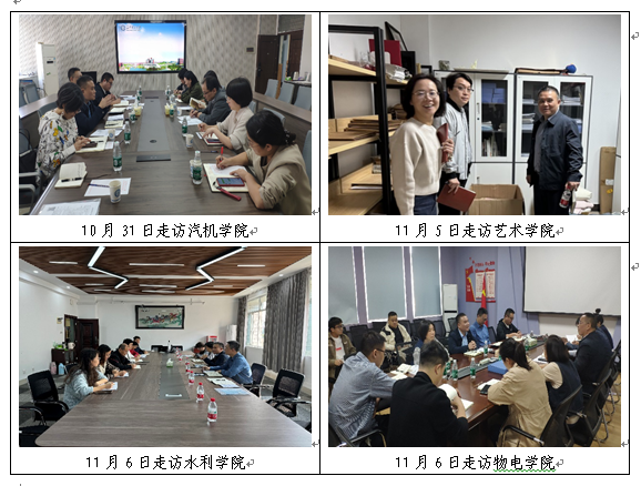为进一步提升各学院综合档案与学生档案管理水平,确保档案资源完整、准确、安全和有效利用,2024年10月22日-11月21日,档案馆陈坤馆长一行先后到我校全部24个学院开展走访服务工作。副馆长王任飞、馆务与数字化办公室主任张奎、综合与学生档案室主任蔡焰辉、档案收集何潘毅、学生档案管理王卓卿参加了系列走访服务活动。