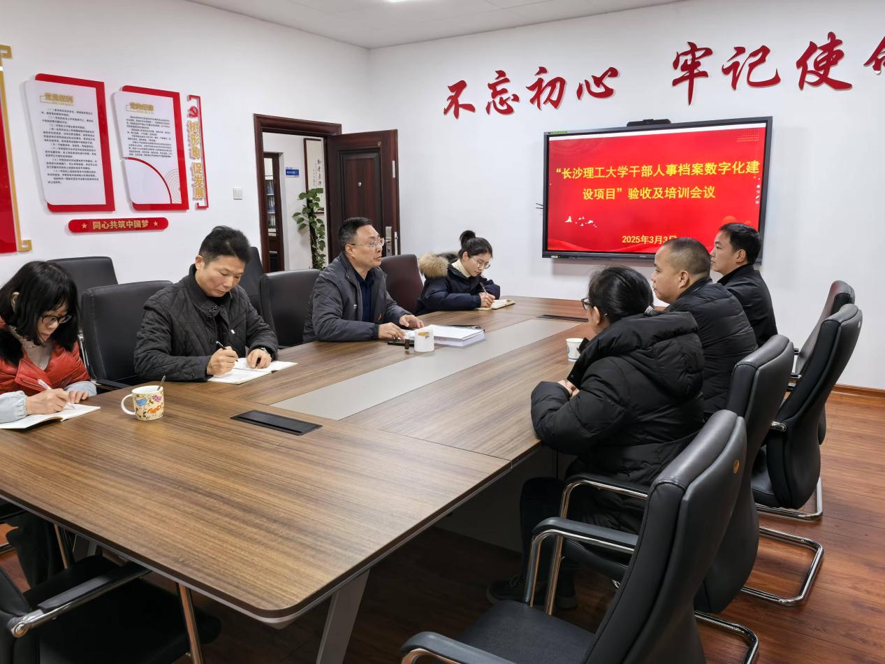 3月3日上午,我校“干部人事档案数字化建设项目”验收及培训会在金盆岭校区档案馆会议室举行。该项目由湖南德立信科技发展有限公司实施,校组织部、档案馆相关人员全程参与验收工作。