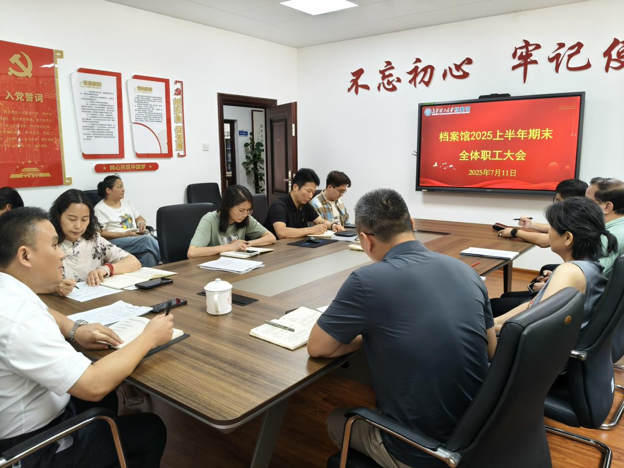 7 月 11 日,档案馆召开2025年上半年工作总结会议,全面回顾上半年工作成效,部署暑期重点任务。会议由副馆长尹晖英主持,全馆教职工参会。