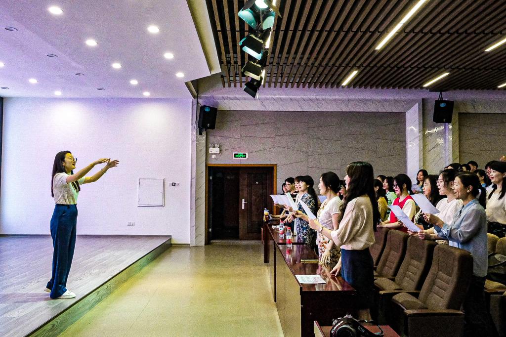 前期,合唱团通过各分工会进行宣传招募,共吸引了70余名爱好声乐艺术的教职工积极报名。5月16日,校工会组织了演唱水平考核,通过简谱视唱和演唱歌曲两个环节,最终选拔了在音准、音色、音域、节奏感等方面表现突出的50名教职工正式加入合唱团。合唱团聘请了湖南师范大学音乐学院合唱指挥硕士张亚男担任合唱指挥,进行日常指导和排练。后期,将每周开展1次训练,进行基础乐理、发声训练、合唱技巧等专业系统的培训。