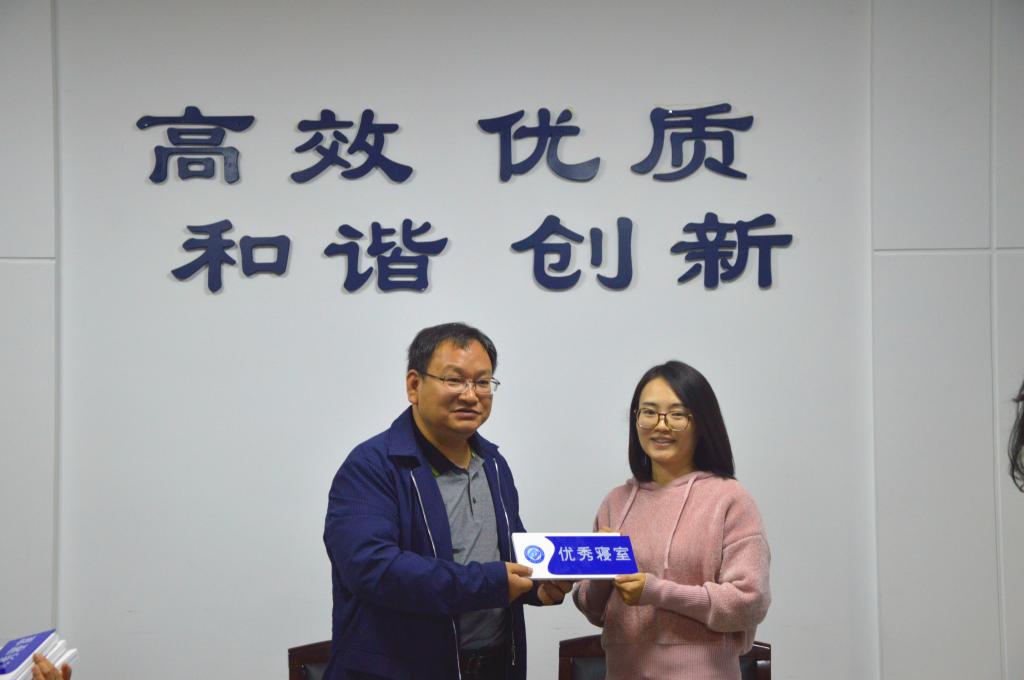 会议最后,举行了授牌仪式,此次全校共有1591间寝室被授予“优秀寝室”称号。