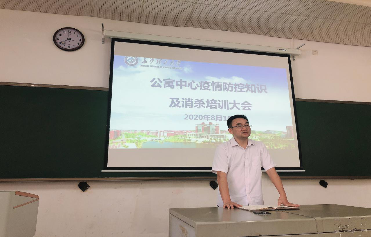谭秋明对疫情防控期间的公寓消毒工作进行了现场培训,提出了具体工作要求。