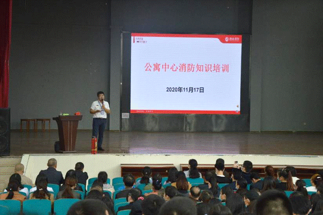 11月17号下午2点,公寓中心在云塘校区活动中心一楼报告厅和金盆岭校区四教多功能报告厅同时组织开展了“学生公寓消防宣传月”系列活动之——消防知识培训,参加人员除公寓中心全体员工外,还有全校300多名文明督导队学生。