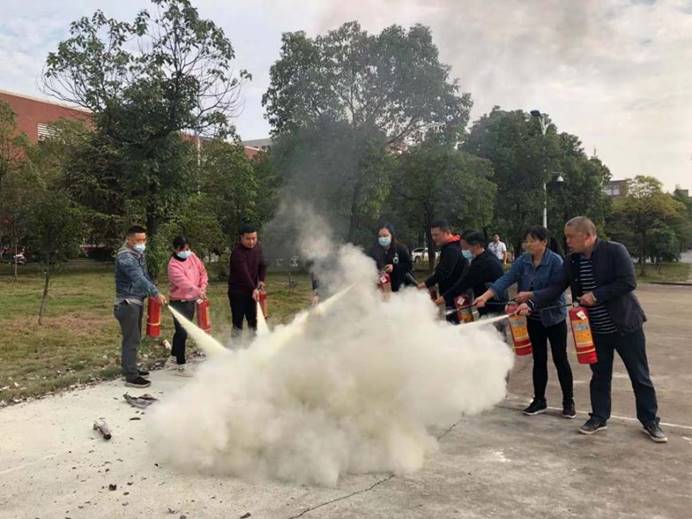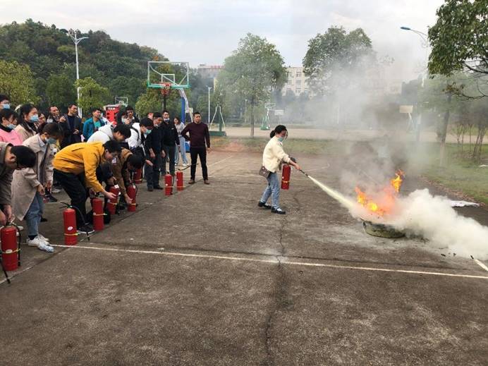 讲座结束后,公寓全体员工和文明督导队学生来到云塘学活旁的篮球场和金盆岭四教旁的空地进行了现场灭火演练,大家积极参与,争先恐后地拿起灭火器进行灭火演练。