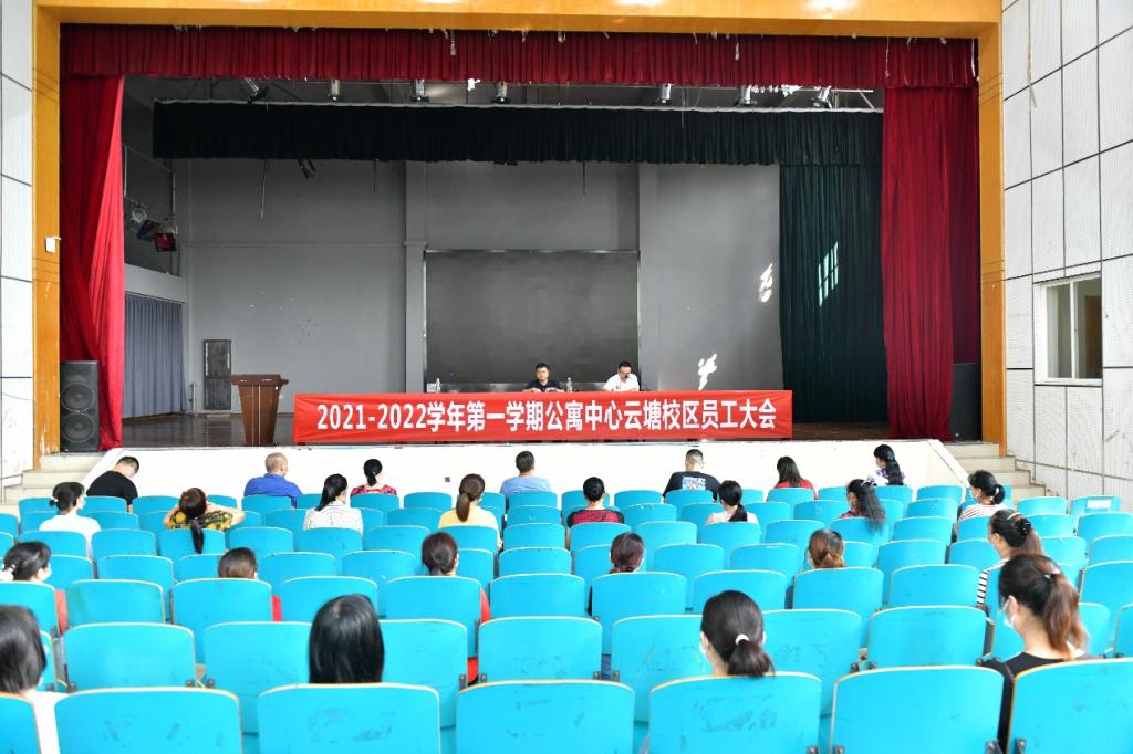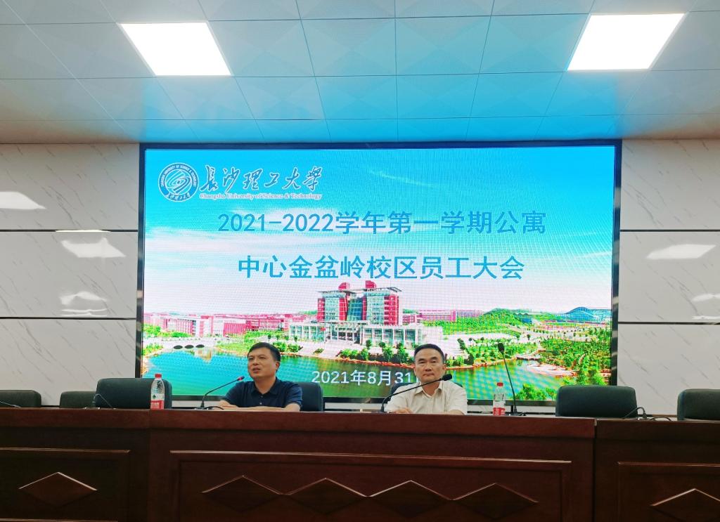 为做好秋季开学工作,落实学校疫情防控要求,8月31日上午、9月2日上午,公寓中心分别在金盆岭校区四教报告厅、云塘校区活动中心科技报告厅召开了全体员工大会,学生工作部部长邱国良出席,全体员工参加。会议由公寓中心主任练黎旋主持。