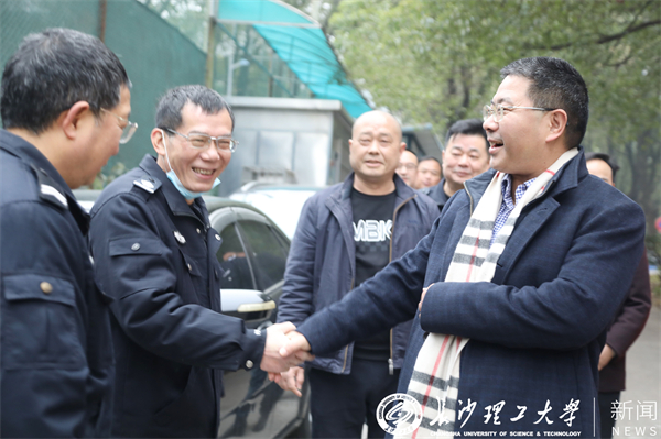 1月21日除夕上午,校长曹一家带队先后前往金盆岭、云塘校区检查工作,看望慰问坚守在值守岗位上的工作人员,向大家致以节日的问候,并向全校师生员工致以新春祝福。党委委员、副校长黄创霞,党委委员、宣传部部长方琼,党政办、宣传部、学工部(处)、保卫部(处)等有关部门负责同志及工作人员陪同检查。