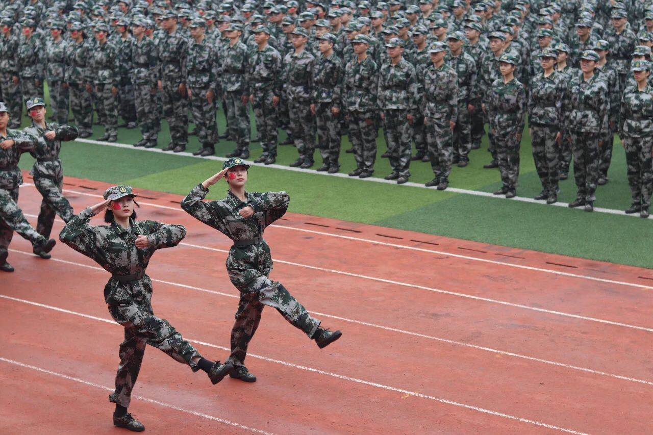 考核大会开始前,首先进行了特色方队的表演。由2020级新生和学校民兵连合作排演的刺杀操、警棍盾牌术、匕首操和战术动作等特色方队赢得了阵阵掌声。