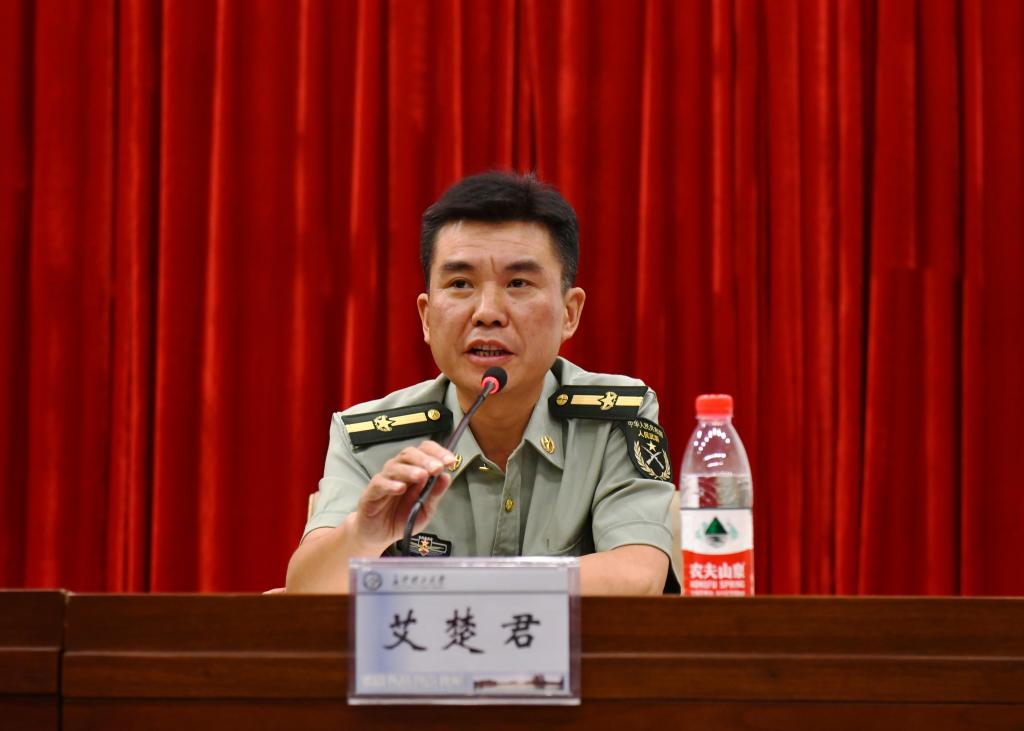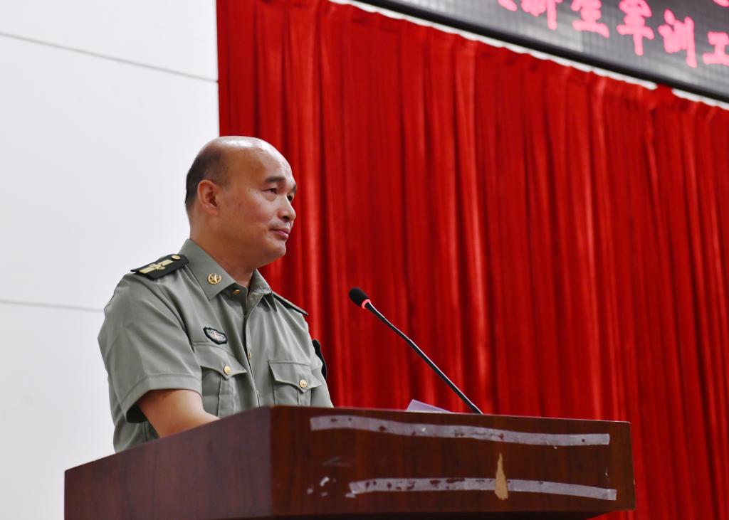 霍向阳宣读了关于军训教官分配的命令,对军训编制和承训教官做出安排:学校成立新生军训模拟团,下设三个营二十四个连。校本部编为两个营,每个院系编为一个连;城南学院编为一个营,每个系编为一个连。民兵连连长王科钧代表全体承训教官发言,决心严格按纲施教、文明带训、科学组训,以饱满的热情和过硬的素质完成军训任务。艾楚君强调,全体承训教官要按照教学进度严格要求、严格训练、严格管理;要注意训练方法,坚持安全第一的原则,高标准做好军训工作。