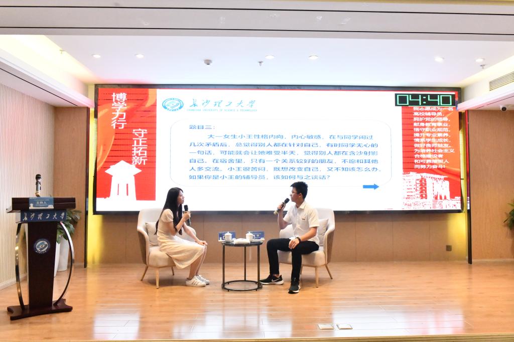 湖南省辅导员年度人物杨文蕴老师以《玩转辅导员》为题,从学生喜欢什么样的辅导员、如何全面了解学生及如何成为幸福的辅导员等角度分享了新时代辅导员如何把学生工作做得有趣、有价值。湖南省辅导员年度人物刘宓蜜老师则以《新辅导员如何做好角色转换》为题,对如何做学生政治素质提升的引领人、成为学生工作的忠诚实践者及团队建设等提供了经验方法。