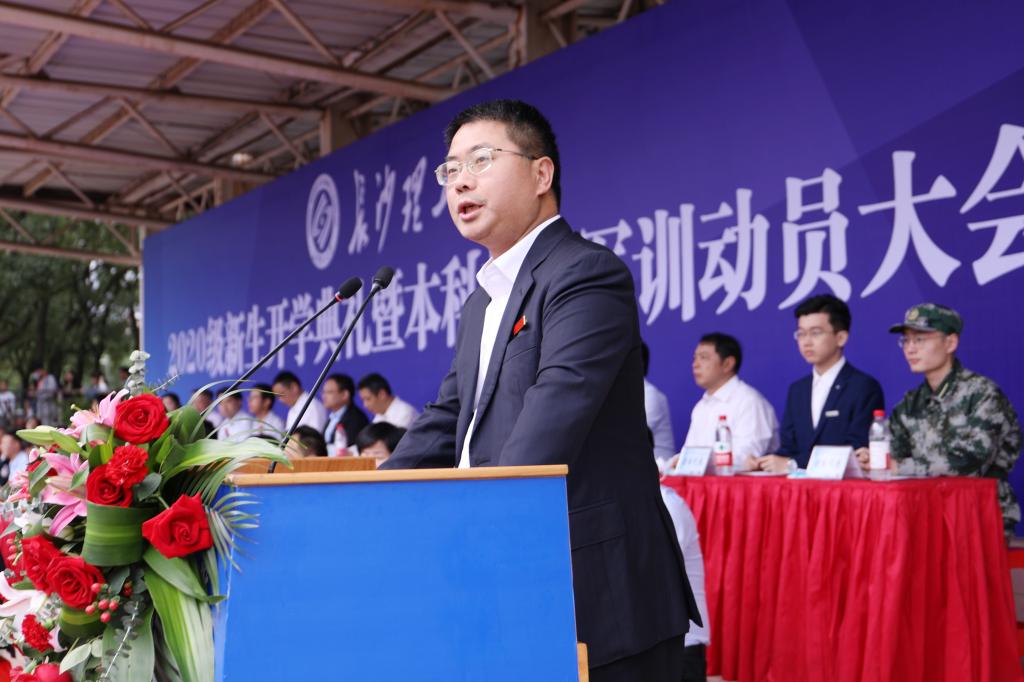 9月19日上午,我校2020级新生开学典礼暨本科新生军训动员大会在金盆岭校区田径场隆重举行。党委书记付宏渊,校长曹一家,党委副书记邹宏如,副校长杨伟军、叶泽、黄立宏、谈传生、蒋昌波,党委委员、组织部部长齐路良出席,相关职能部门负责人、学院党政主要负责人、2020级新生辅导员和全体2020级新生参加了大会。