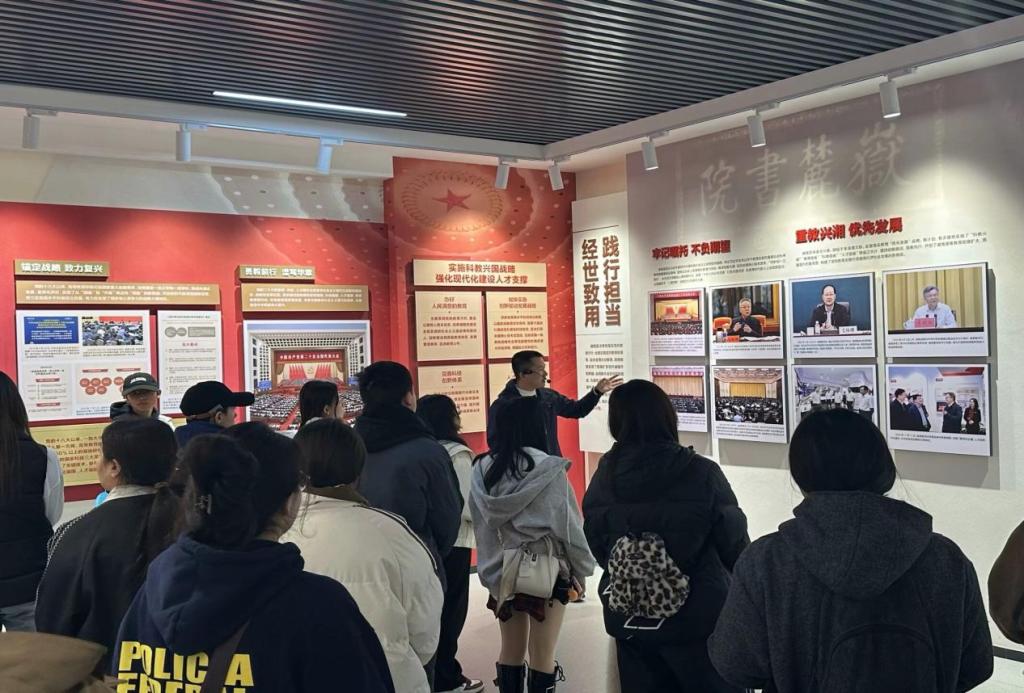 立德树人,逐梦报国。为强化民族学生思想政治教育,增强学生爱国爱党,敬校、荣校意识,11月26日下午,学工部组织全体2024级民族学生前往学校“三全育人”教育基地参观学习。校学工部、保卫处相关老师、“石榴红”民族教育湖南省辅导员综合发展工作室老师及200多名民族学生分批次参加活动。