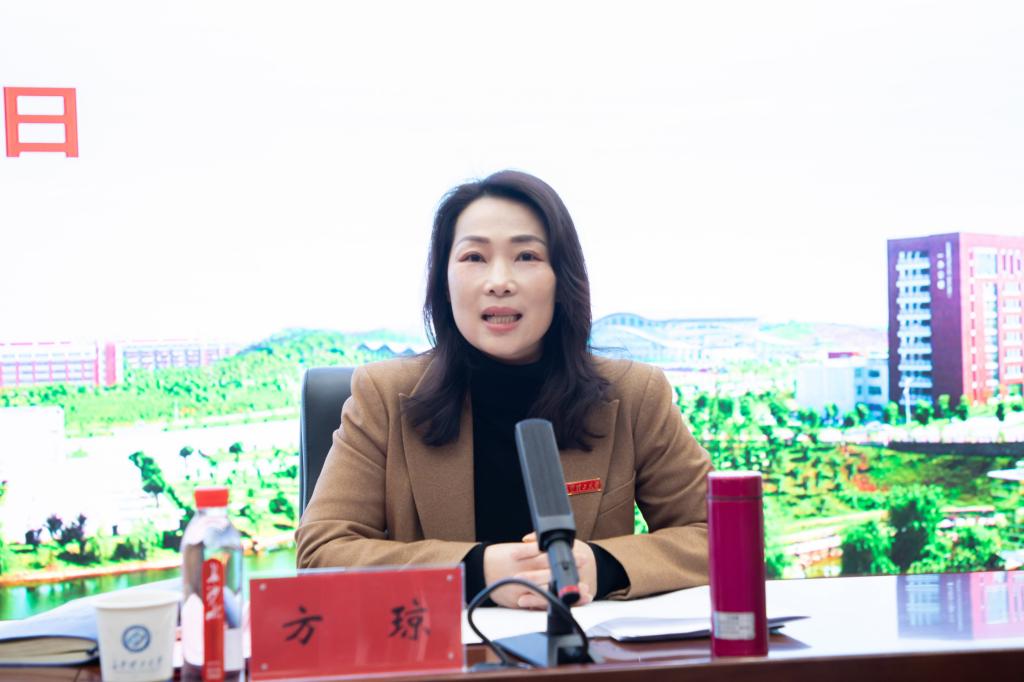 方琼作总结讲话。她表示,宏渊书记的主题报告内涵丰富、意蕴深远,既是一堂习近平总书记关于教育的重要论述的宣讲课,也是一堂形势政策辅导报告,深刻阐释了立德树人工作的重要性和必要性,为推进新时代立德树人工程提供了方法论的指导。她指出,2025年是学校进一步全面深化改革的关键之年,全体学工干部要坚决贯彻落实学校党委部署,创新工作举措,进一步加强自身建设,优作风、强素质、提能力、求实效,坚持务实奋斗、砥砺前行,在推动学校内涵式高质量发展上跑出学工加速度,为培养担当民族复兴大任的时代新人贡献学工力量。