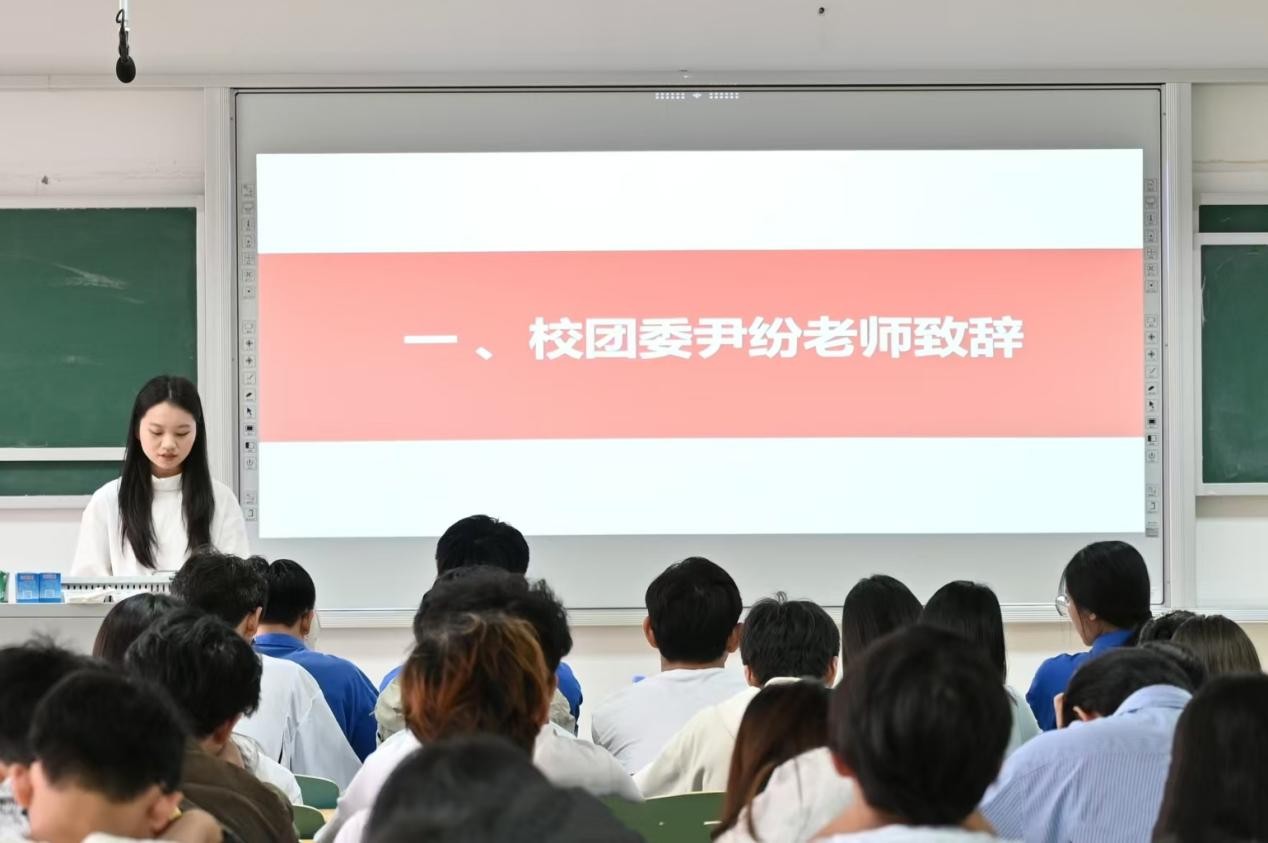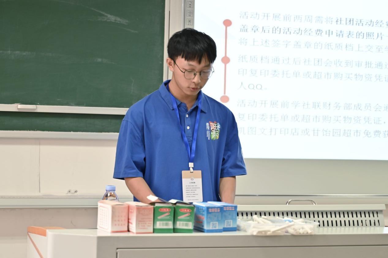 随后,进入大会第二项议程,社团骨干培训班正式开班。会上,全体参会人员合唱中国共产主义青年团团歌。紧接着,2025年新澳门原料网站学生大禹之子青年志愿者协会的会长张怡帆同学作为社团骨干培训班学员代表进行发言,向学员们分享了社团发展经验。最后,学社联办公室张耀之宣读了2025年新澳门原料网站第四期骨干培训班相关安排。希望各社团骨干严守纪律,认真学习,深入思考,积极交流,从本次培训中有所收获,努力把我校社团工作推向新的高度。