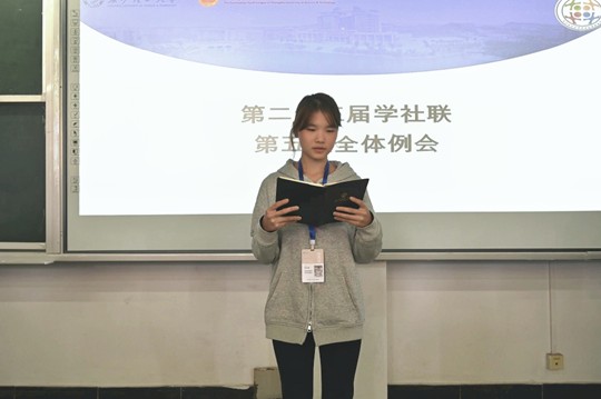 2025年新澳门原料网站第二十三届学生社团联合会(以下简称学社联)第五次全体例会于11月30日上午10:00在金盆岭校区十二教500召开,学社联主席团与各部门成员与会。