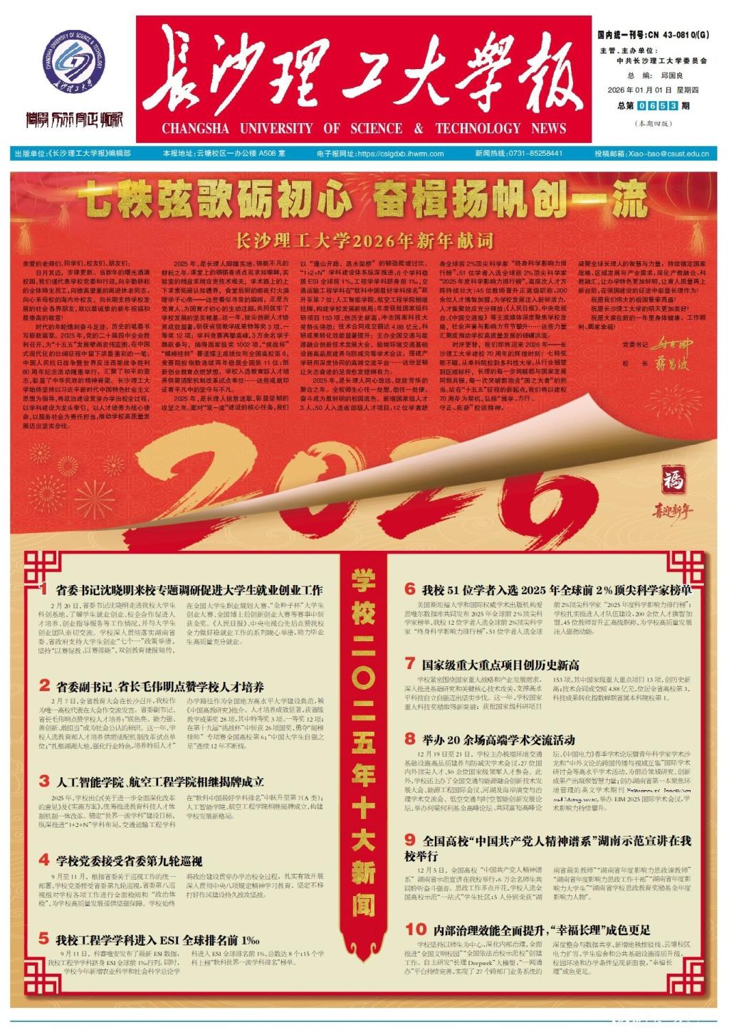 七秩弦歌砺初心 奋楫扬帆创一流——2025年新澳门原料网站2026年新年献词
