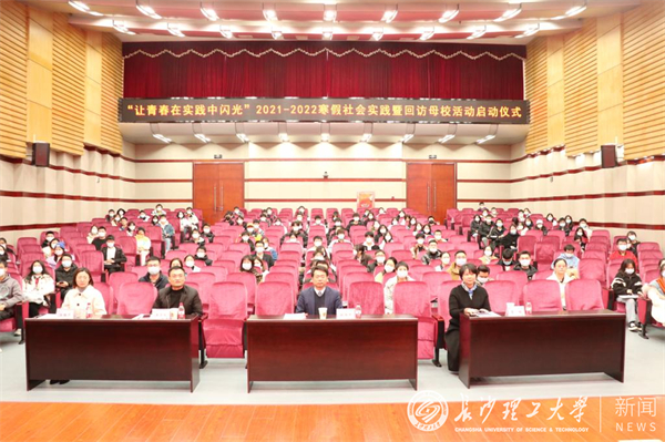 1月10日,我校2021-2022学年“让青春在实践中闪光”寒假社会实践暨回访母校活动启动仪式于云塘校区图书馆报告厅召开,副校长钱国平、招就处处长曹瑛、校团委书记王学成、校团委副书记陈璐莎出席,各学院团委书记、招就处及校团委老师、各学院学生代表参与仪式。