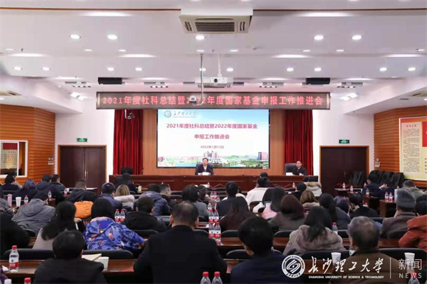 1月13日下午,我校2021年度社科总结暨2022年度国家基金申报工作推进会在一办公楼九会议室举行。副校长曾祥君出席会议并讲话,社科处处长刘建江主持会议。相关学院院长、学院科研工作负责人、科研与研究生工作办公室主任及教师代表等120余人参加会议。