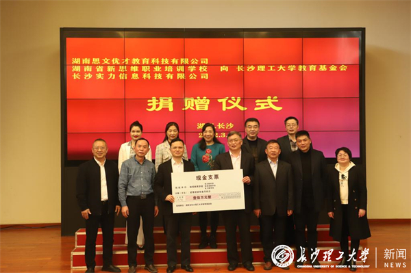 3月9日下午,教育基金会捐赠仪式在金盆岭校区校友之家举行。湖南思文优才教育科技有限公司、湖南省新思维职业培训学校、长沙实力信息科技有限公司三家合作办学机构向我校捐赠一佰万元教育基金。副校长、基金会理事长谈传生,校友总会副会长黎正稳,秘书长张美红,继续教育学院党总支书记何纯芳、副院长向英,校友中心副主任肖晖及有关人员参加会议。捐赠仪式由校友中心主任、基金会秘书长郑延恒主持。