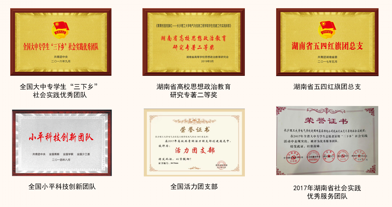 电气学院团总支紧扣“培养担当民族复兴大任的时代新人”工作目标,抓实团总支、学生会两支队伍,牢牢把握文化育人、科技育人、实践育人三个抓手,夯实思想引领、组织建设、文化活动、实践锻炼、创新培育五项举措。近五年,先后获全国“活力团支部”“湖南省五四红旗团总支”湖南省暑期“三下乡”社会实践活动优秀团队等292项省级及以上荣誉,学院学生参加“挑战杯”等科技竞赛,累计获国家级奖励87项,省级奖励198项,被人民日报、中国青年报等主流媒体报道100余次。