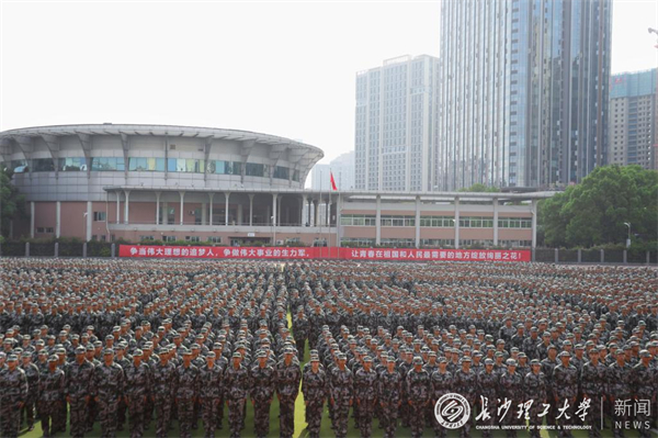 9月10日上午,我校2022级学生军训汇报总结大会在金盆岭田径场举行。副校长曾祥君、钱国平,湖南省学生军训办公室主任汤光强、长沙市天心区人民武装部部长朱云辉,相关职能部门负责人和各学院党政负责人出席会议。全体2022级本科新生及辅导员参加总结大会。大会由钱国平主持。